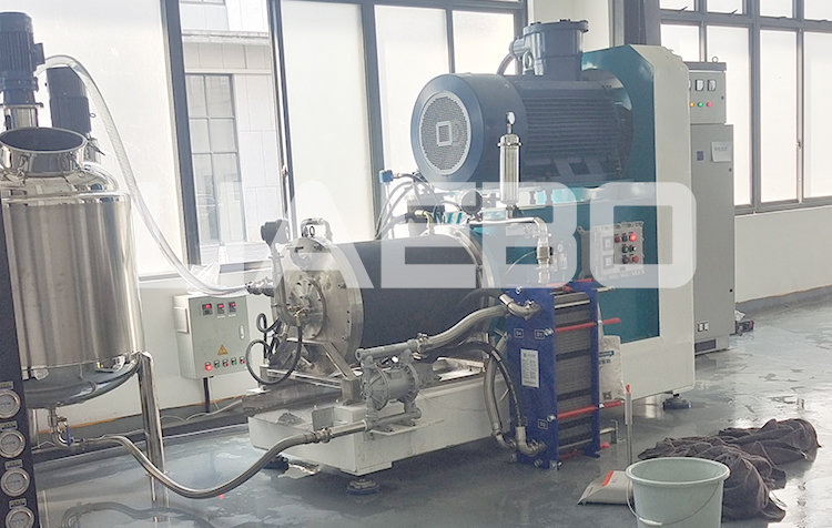 浙江紹興某新材料有限公司 100L棒塊陶瓷納米砂磨機(jī)調(diào)試成功