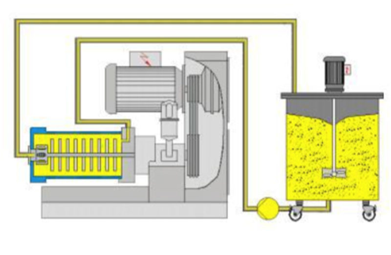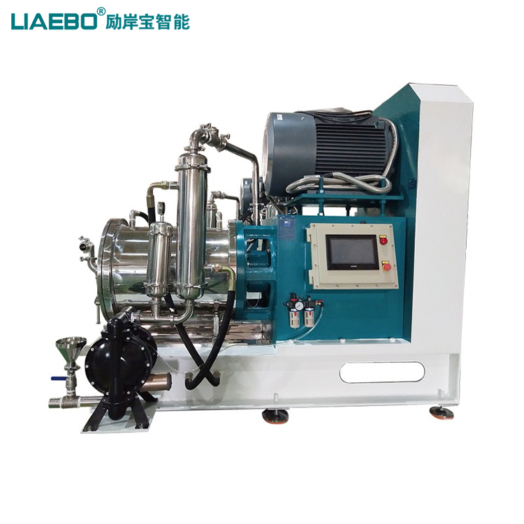采用循環(huán)研磨工藝,環(huán)保節(jié)能、勞動強度小。配制好的原始漿料,經(jīng)過第一遍粗略研磨后,泵入循環(huán)攪拌罐,經(jīng)底部泵輸送進入納米研磨機;一邊經(jīng)過研磨后送入循環(huán)罐,與未曾研磨過的物料通過攪拌機快速混亂,一邊又通過底部泵入砂磨機,周而復(fù)始直到達成研磨要求。一般而言,罐的容積是砂磨機流量的1/4。采用循環(huán)研磨工藝或多次研磨工藝能使產(chǎn)能提高,產(chǎn)品顆粒級配分布得以優(yōu)化。稍加一些控制功能,可保證產(chǎn)品的可復(fù)制性及節(jié)省成本。大尺寸轉(zhuǎn)子加上筒狀縫隙式分離器,使該型設(shè)備可使用不同材質(zhì)小顆粒珠子。對于防金屬污染的物料,可采用陶瓷(碳氮化硅,氧化鋯)及聚氨酯結(jié)構(gòu)材料。