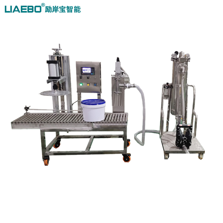 液體灌裝機(jī)是以重量方式精確地將大量的散裝液體物料分裝到各種容器、鐵桶或塑料桶中,用于 4L~30L 桶自動(dòng)定量灌裝。廣泛應(yīng)用于化工、農(nóng)藥等與液體狀物料相關(guān)的行業(yè),適用在涂料、油漆、油墨、膠粘劑、固化劑、樹脂、染料、清洗劑、機(jī)油、甘油、潤(rùn)滑油、食用油、香精、溶劑、助劑、食品添加劑、農(nóng)藥及其他危險(xiǎn)性化學(xué)產(chǎn)品等產(chǎn)品中。單頭半自動(dòng)灌裝機(jī)自動(dòng)化控制儀表接收稱重傳感器給出的重量信號(hào),單頭/大流量/小流量控制進(jìn)料閥,實(shí)現(xiàn)自動(dòng)灌裝的目的:并配有半自動(dòng)輸送輥道及壓蓋/夾蓋/裝置,完成物料灌裝與密封過(guò)程。主要用于馬口鐵桶、塑料桶的定量自動(dòng)灌裝,也適用于食品、制藥、化工等多種行業(yè)液體類物料的自動(dòng)定灌裝。