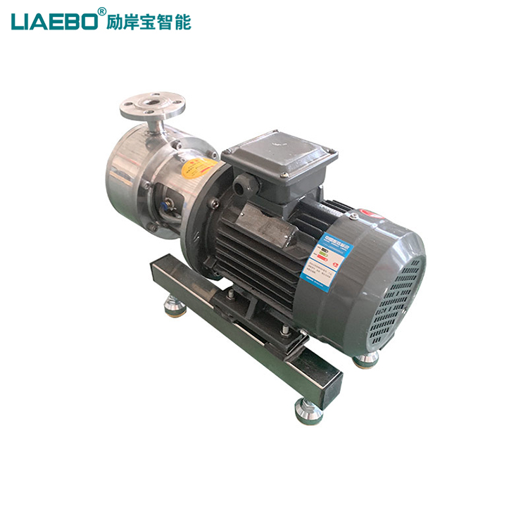 單級高剪切乳化泵是連續(xù)式生產或循環(huán)處理精細物料的的高效率乳化機。電機帶動轉子高速運轉,通過機械外力作用的方法使液-液、固-液物料顆粒粒徑變窄,使一種相均勻分布到另一種或多種相中,達到細化均質、分散乳化效果,從而形成穩(wěn)定的乳狀液的狀態(tài)。單級管線式高剪切乳化機前級可配置送料泵,對中高粘度物料有一定的適用性。設備噪音低,運轉平穩(wěn),無死角,物料百分之一百通過分散、剪切的作用。具有短距離、低揚程輸送功能。單級高剪切乳化泵采用臥式結構。在狹長的工作腔內裝有一組轉定子,轉定子可設計成單級兩層或者單級六層機構,轉定子對偶耦合,高度配合。由電機帶動中間軸進行高速運轉,轉定子形成真空,物料從**被吸入轉定子腔內,強大動能使轉子產生極高的線速度,使物料在轉、定子間隙之間經過強烈的撞擊、破碎、離心擠、液層摩擦、強力剪切之后飛射出去,在多種不同方向力的作用下,產生強大紊流,物料從出口流出??蛇M行多次循環(huán)操作。